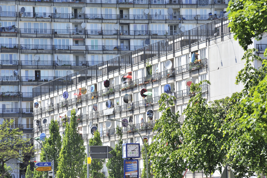 It wasn't only about doing a sort of beautification to get an artistically valuable building. My interest was focused on the question, who exactly was hidden behind these receivers? I asked myself: "How would families living behind the receiving walls create their "satellite dish" themselves? How did the people want to be "seen" or what picture would they like to send out? Which "sign" which "message", would the families like to display?"