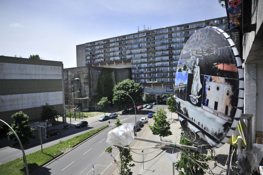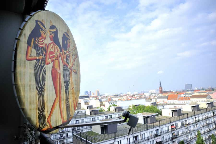 Bei einer Reise nach Berlin fiel mir das Pallasseum auf: Mitten in der Stadt horchten die Parabolspiegel nach Bildern und Nachrichten aus aller Welt. Bei ersten Erkundungen lernte ich die internationale Nachbarschaft im Haus kennen. Fasziniert von dieser multikulturellen Umgebung entwickelte ich mein Konzept für das Pallasseum fort.