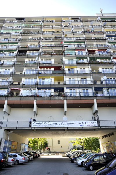 Das Projekt "Von Innen nach Außen" ging im Sommer 2009 an den Start. Würde es gelingen die Bewohner des Pallasseums für das Projekt zu gewinnen? Bei Treffen und sehr vielen Hausbesuchen befassten sie sich mit der Idee. Nach anfänglicher Skepsis entschlossen sie sich überwiegend, mitzumachen und die für sie sehr wichtigen Antennen zur Verfügung zu stellen. Die am Projekt beteiligten Bewohner erhielten die Möglichkeit, in einem künstlerisch, kreativen Prozess in eine Auseinandersetzung mit sich, ihrer direkten Umgebung oder auch ihrer Herkunft, zu kommen.